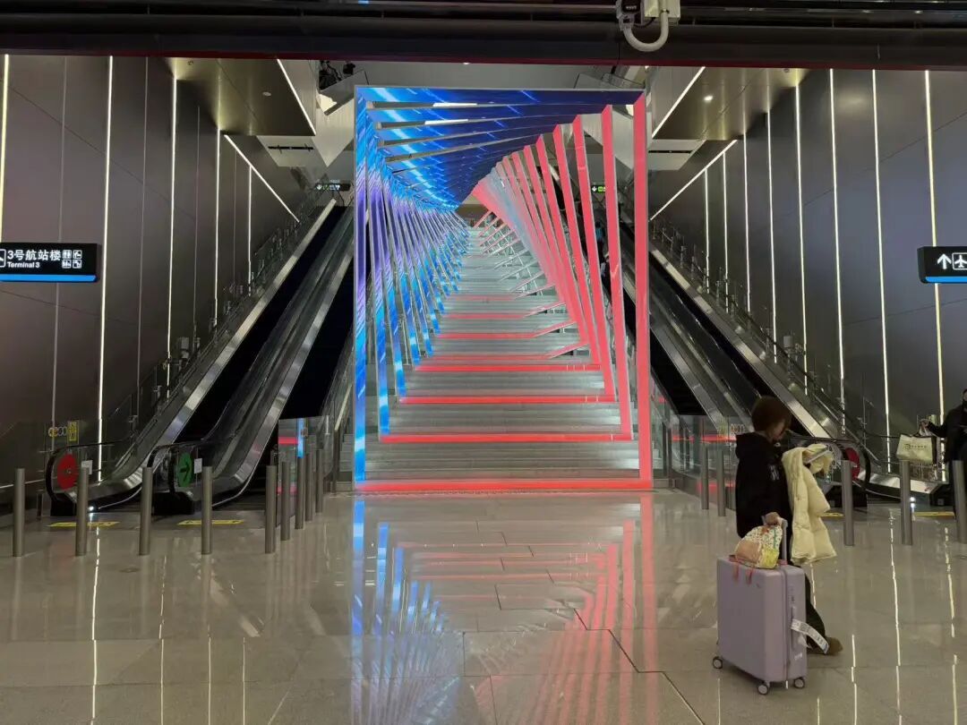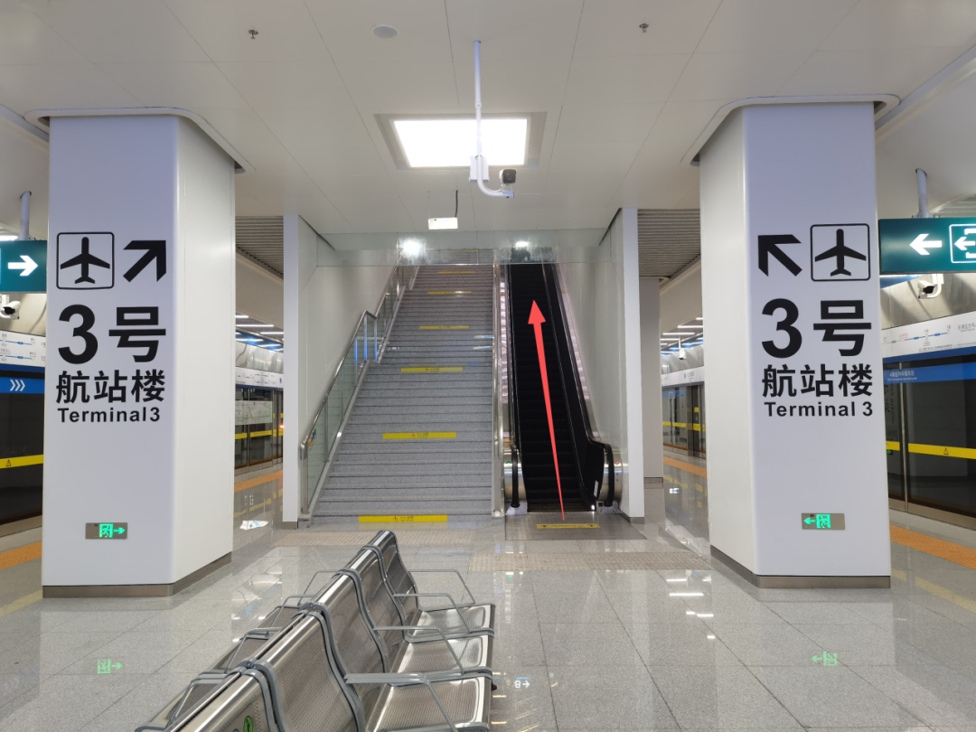 ● 到达城际白云机场东站(3号航站楼)后,跟随“3号航站楼”标识指引搭乘扶梯上行。