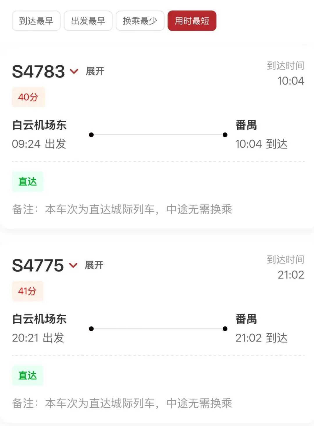 更便捷的是,通过广州东环城际铁路可实现白云机场东站(3号航站楼)与白云机场南站(1号航站楼)、白云机场北站(2号航站楼)之间的高效接驳,全天平均发车间隔15分钟一班,轻松串联起白云机场各大航站楼。还可从机场出发,前往肇庆、佛山、清远、东莞、惠州、深圳等城市,跨城出行更方便。